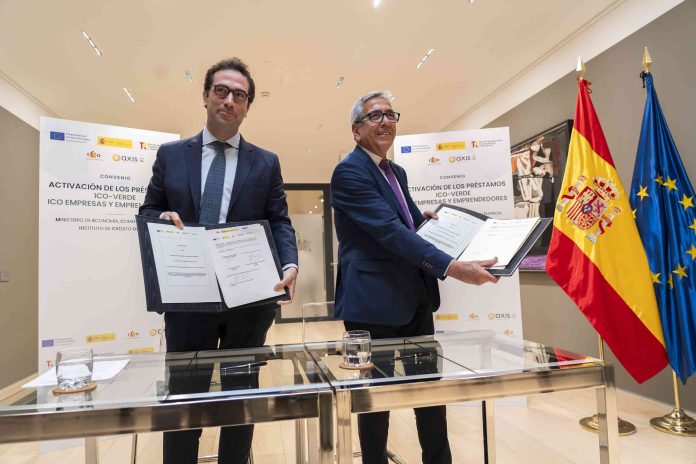 El ministro de Economía, Comercio y Empresa, Carlos Cuerpo, y el presidente del Instituto de Crédito Oficial (ICO), José Carlos García de Quevedo, han suscrito hoy el convenio que regula las condiciones de las líneas “ICO Verde” e “ICO Empresas y Emprendedores” y activa el despliegue los 30.150 millones de euros en préstamos del Plan de Recuperación con los que están dotados estos programas.