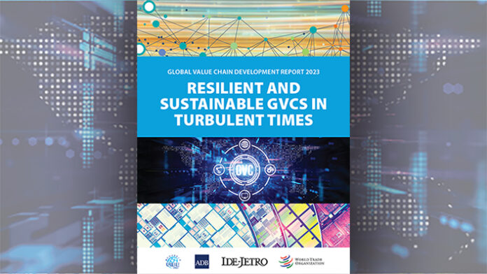 El informe, titulado “Informe sobre el desarrollo de las cadenas de valor mundiales 2023: cadenas de valor mundiales resilientes y sostenibles en tiempos turbulentos”, es una publicación conjunta del Banco Asiático de Desarrollo (BAD), el Instituto de Economías en Desarrollo – Organización de Comercio Exterior de Japón (IDE-JETRO), el Instituto de Investigación Instituto de Cadenas de Valor Globales de la Universidad de Economía y Negocios Internacionales (UIBE) de Beijing y la Organización Mundial del Comercio.