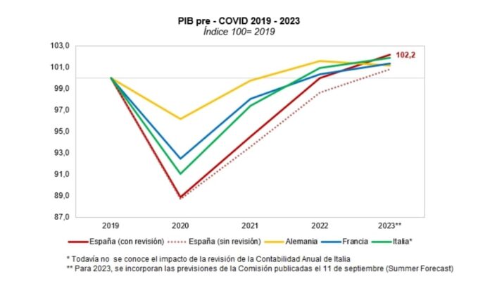 - Este dinamismo se mantiene de forma diferencial durante 2023 y permitirá que España sea el país de las grandes economías de la zona euro que tenga un mayor crecimiento económico