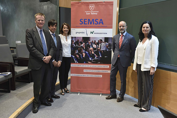 El pasado 23 de mayo, el Instituto Internacional San Telmo celebró una nueva edición del SEMSA, Seminario Especializado en Empresas de la Cadena Alimentaria que, en los últimos años, se ha convertido en referencia anual y que da cita a la alta dirección de las principales empresas del sector agroalimentario. De este modo, casi un centenar de empresarios y directivos del sector, tuvieron la oportunidad de reflexionar sobre los retos y oportunidades del sector.