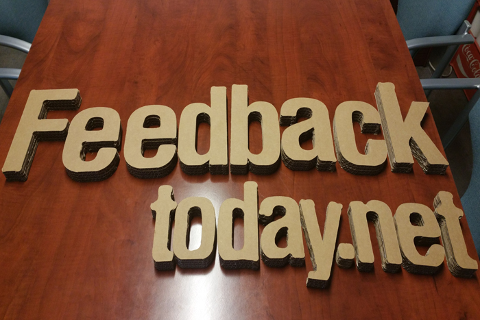 Lo vemos en estos cartones que nos ha traído, con la palabra “FeedbackToday” troquelada y en 3D.