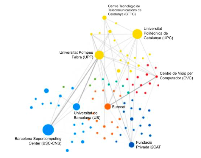 Las entidades de Cataluña que participan en más proyectos de inteligencia artificial son la Universidad Politécnica de Cataluña, el Barcelona Supercomputing Center, la Universidad Pompeu Fabra, el centro tecnológico Eureca y la Universidad de Barcelona