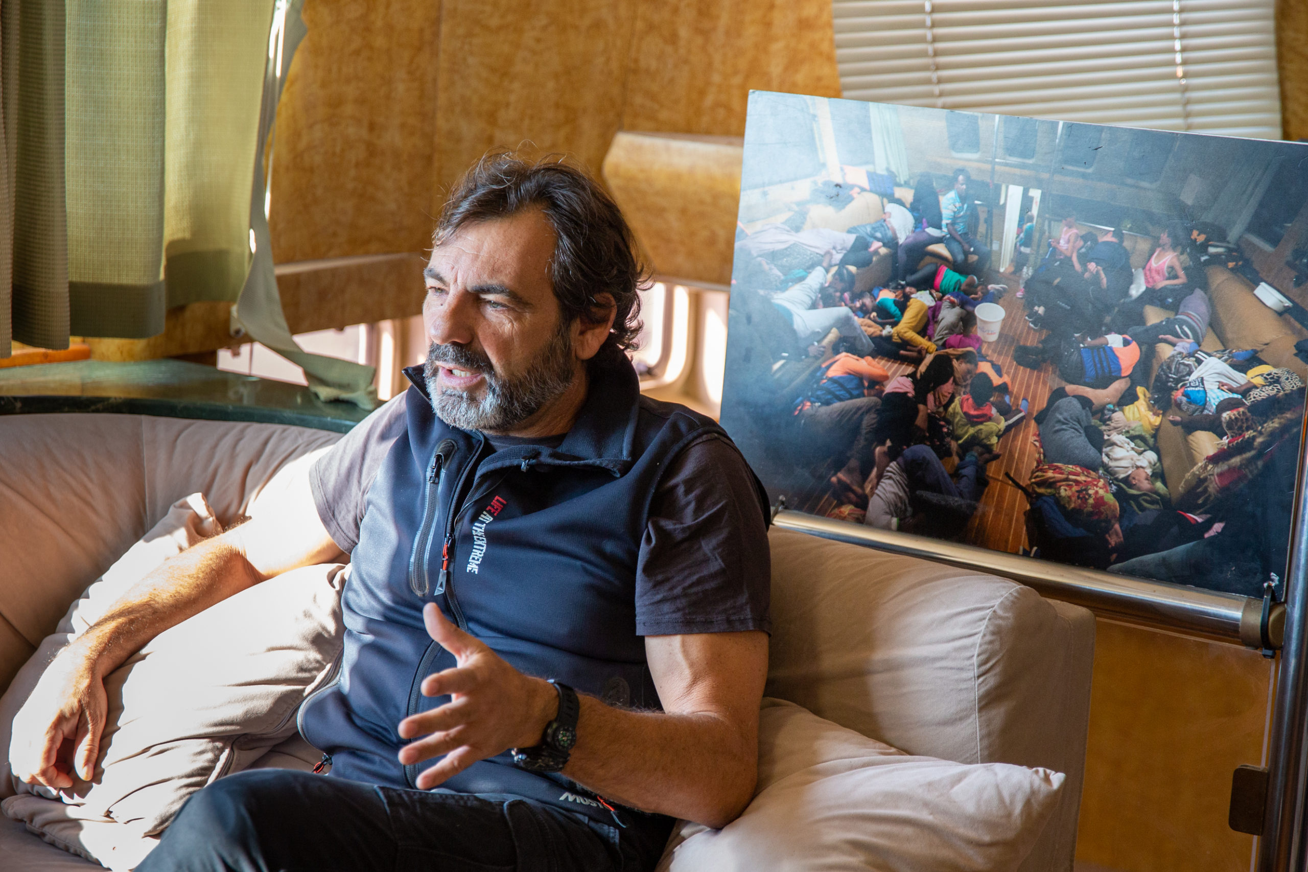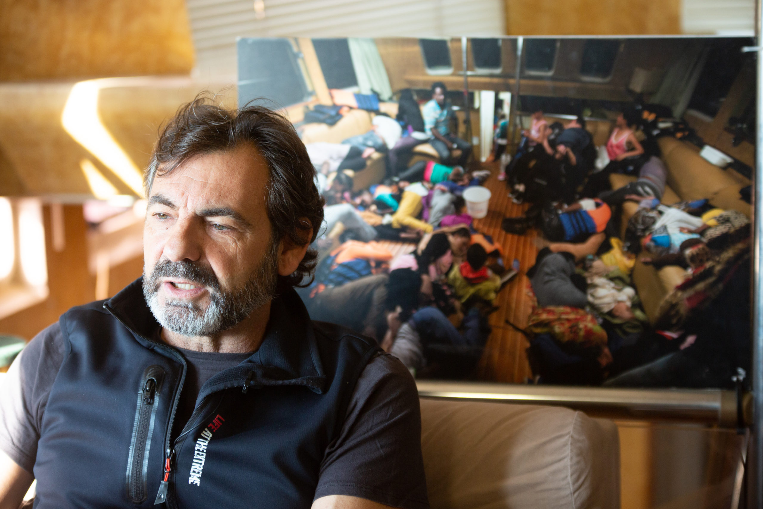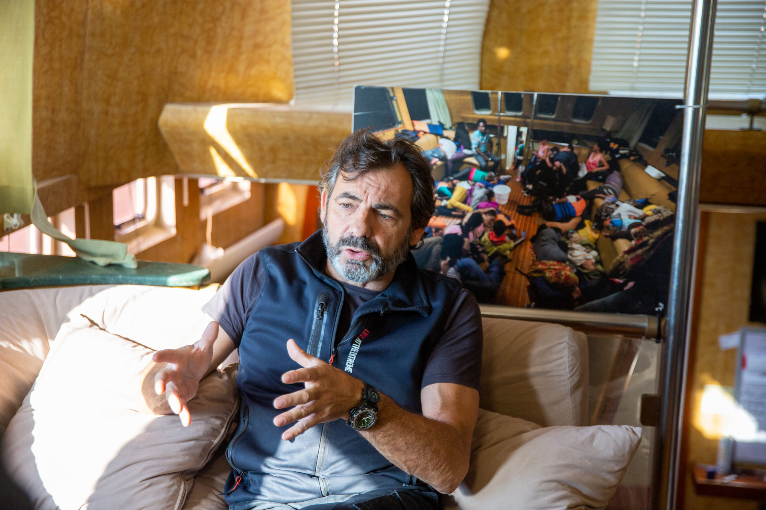 Hoy nos encontramos dentro de un barco que es mítico: el “Open Arms”. Ha salvado decenas y decenas de vidas de personas que, huyendo de la guerra y la violencia, intentaban sin éxito llegar a las costas europeas. Oscar Camps, empresario y filántropo, se encuentra al mando.