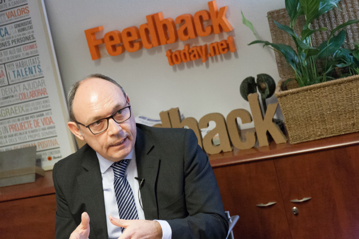 Gestionamos productos y servicios de movilidad. Esto es: fabricamos escaleras, pasillos rodantes, plataformas elevadoras, ascensores, etc. Y éstos, una vez colocados en el mercado, necesitan ser instalados y, sobre todo, recibir mantenimiento, porque son elementos que tienen que durar, y si es para toda la vida, mejor. Nuestros clientes son de dos tipos: por un lado, están las comunidades de propietarios. Le diré que, en este mismo edificio, el de la redacción de Feedback Today, el ascensor es de Thyssen Krupp y el conserje me ha dicho que está muy bien mantenido.