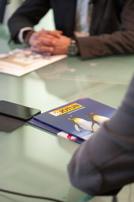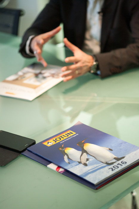 “Nuestro fundador, el Sr. Gleditsch, se enroló en la marina mercante noruega. Vio las colonias de pingüinos y le parecieron nobles y divertidos. Hoy día tenemos cuatro valores muy importantes: cuidado, lealtad, respeto y atrevimiento, que son los mismos que encarnan esos animales. El logo de Jotun es un pingüino”