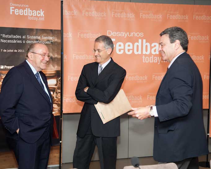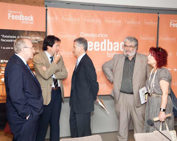 El pasado jueves 7 de julio, en el Hotel Condes de Barcelona, tuvo lugar un nuevo Desayuno Feedback Today titulado “Recortes en el Sistema Sanitario: ¿necesarios o demagógicos?”. El desayuno coloquio contó con la presencia de expertos y personalidades del sector.