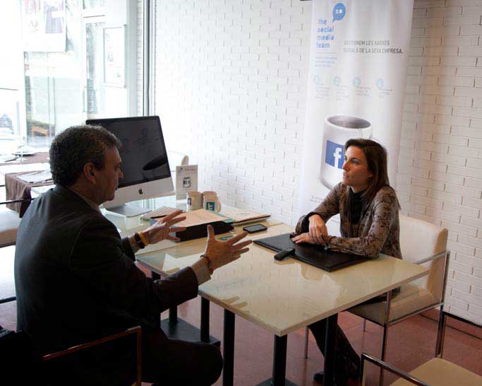 Bueno, hay que entender que The Social Media Team es una empresa online que no necesita ni de mucho espacio, ni de otras cosas que no sean estrictamente el acceso a las redes sociales. Todo lo colgamos en el cloud, y ahí se va a buscar. Y mis dos socios se ocupan de otros ámbitos: uno es el propietario de una agencia de comunicación de las llamadas tradicionales, que ahora está consiguiendo también ofrecer el paquete de redes sociales; y el otro trabaja en lo que se podría llamar el tema comercial.